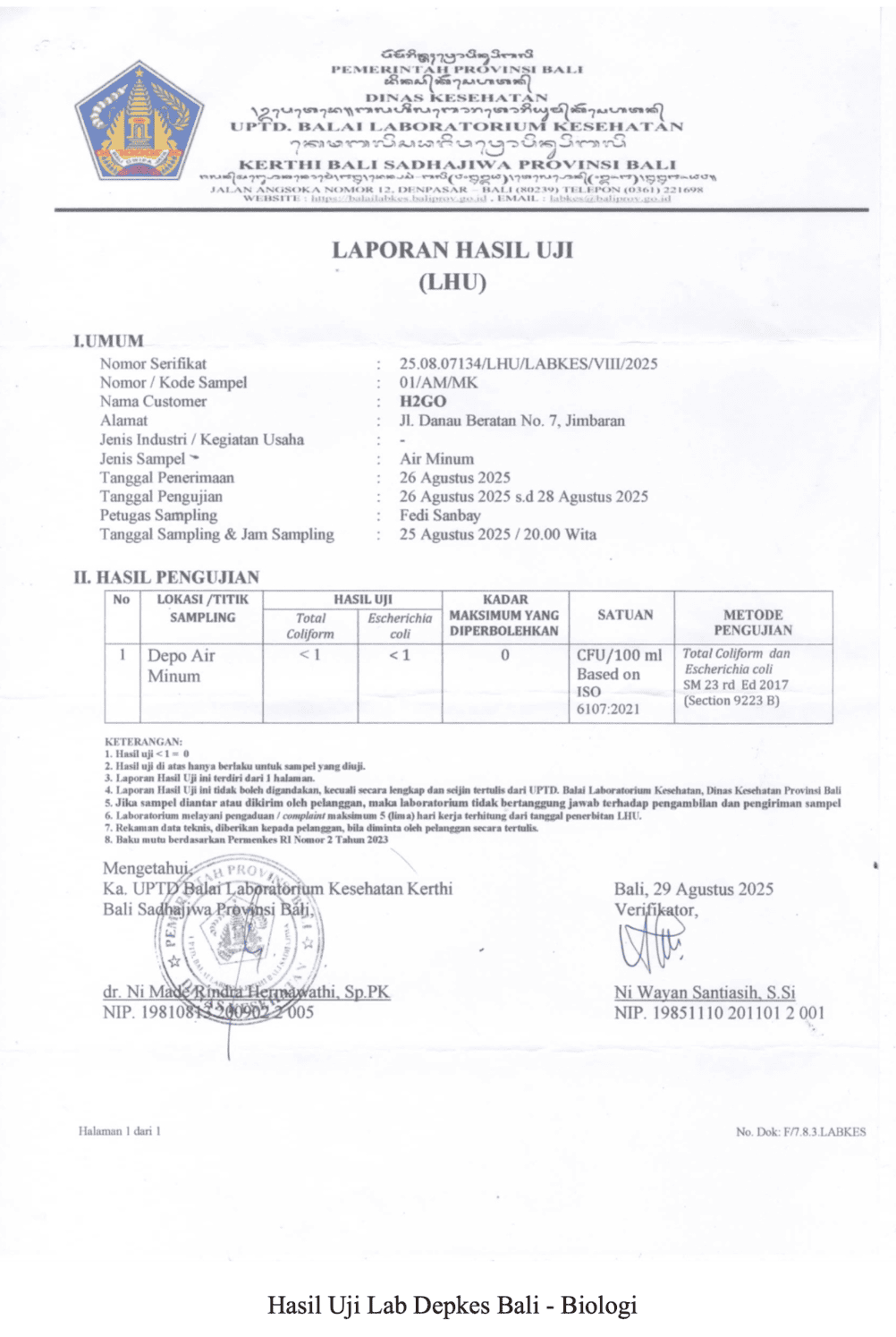 45% air isi ulang di pasaran terkontaminasi E. Coli (tercemar air tinja)